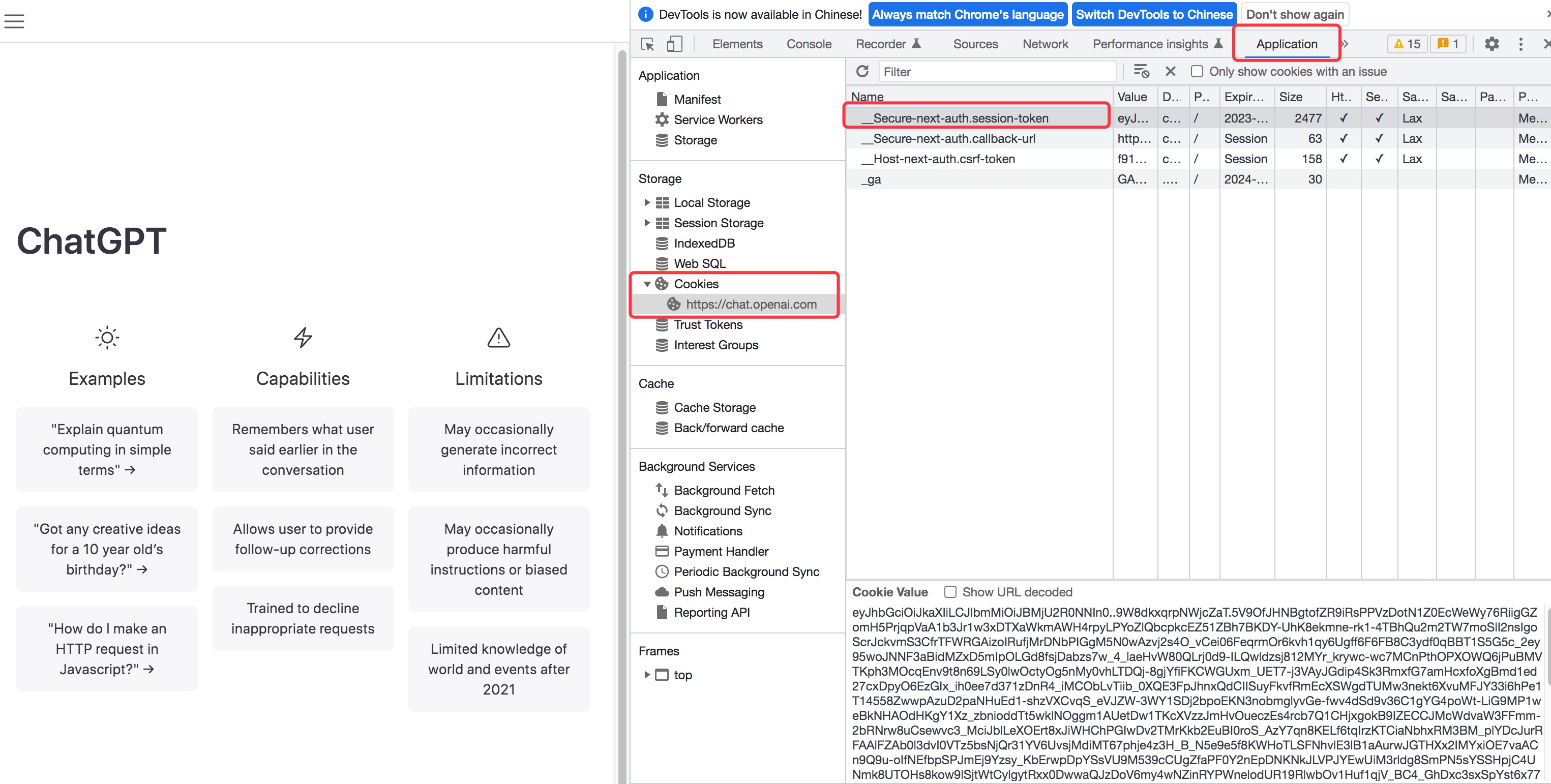 -- 选择Application -> Cookies,将 session-token 中的值填入配置中